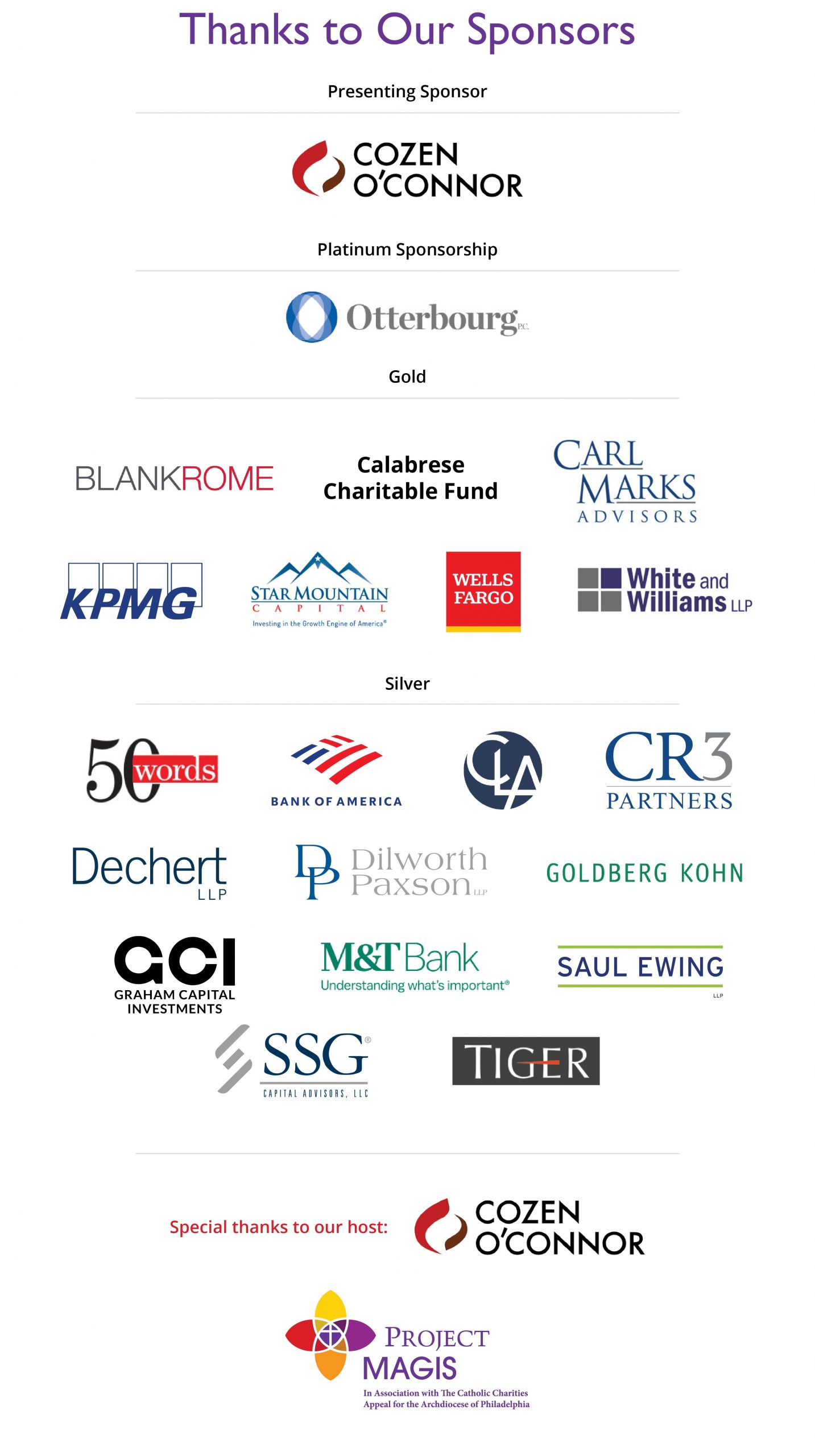 The Third Annual Project Magis Cocktail Reception, hosted by Blank Rome, was held at the Logan Hotel on Tuesday, September 28th. Thanks to the generosity of Blank Rome LLP and our sponsors, this event raised over $87,000 for the Catholic Charities Appeal, with 100% of the proceeds going directly to support beneficiary programs.